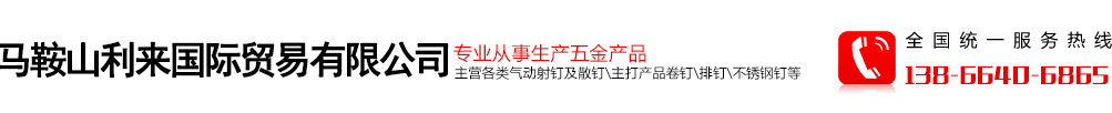 馬鞍山利來國際貿易有限公司位于安徽省馬鞍山市,成立于2014年,是一家專注于金屬產品生產和外貿出口的現代化企業!公司擁有自己的生產工廠蕪湖優利來金屬制品有限公司!工廠專業從事生產五金產品,生產各種規格和品種的氣動射釘及散釘,主打產品有小帽卷釘,塑排釘,紙排釘,不銹鋼釘,大帽釘及其他規格工業用釘!公司為更好的滿足客戶的需求,還可以幫助客戶采購各種非公司生產的產品,滿足客人拼柜的需求,給客戶提供更多的便利。